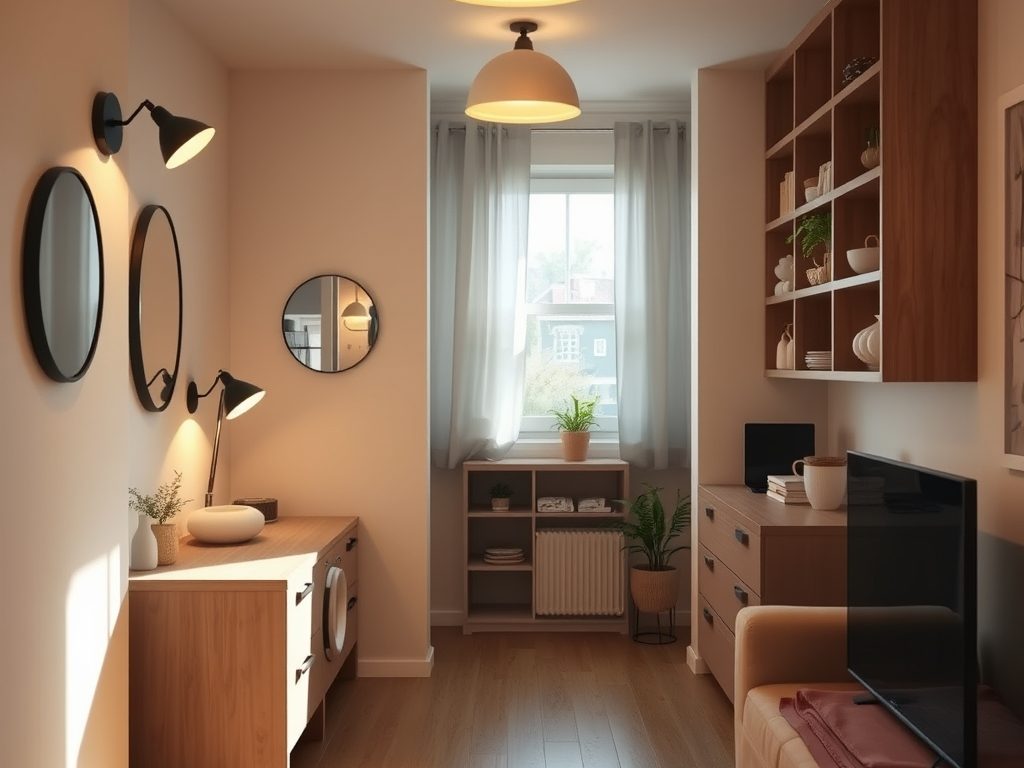 Aby maksymalnie wykorzystać swoją przestrzeń, stosuj lustra naprzeciwko okien, co dodatkowo optycznie powiększy wnętrze. Oprócz tego, zwróć uwagę na barwę i natężenie światła, które powinny być dostosowane do funkcji pomieszczenia. Jasne i ciepłe światło sprzyja przytulności i sprawia, że pomieszczenie wydaje się bardziej przestronne.